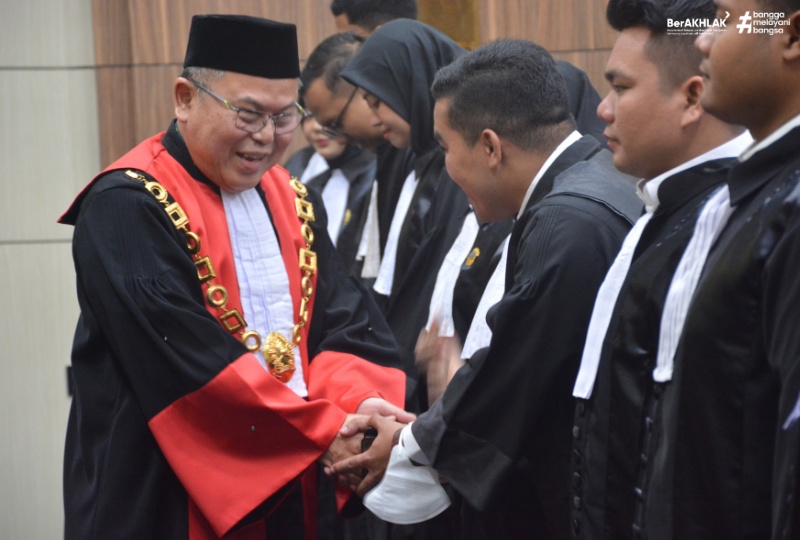 Dalam sambutannya, Ketua Pengadilan Tinggi Banda Aceh menyampaikan selamat kepada para advokat yang baru diambil sumpahnya. Beliau menegaskan bahwa pengambilan sumpah bukan sekadar seremonial, tetapi merupakan tanggung jawab moral dan profesional untuk menjunjung tinggi nilai-nilai keadilan, integritas, serta etika dalam menjalankan profesi hukum. Advokat, menurutnya, adalah mitra penegak hukum yang berperan penting dalam menjaga marwah peradilan dan menegakkan supremasi hukum di Indonesia, khususnya di wilayah Aceh.