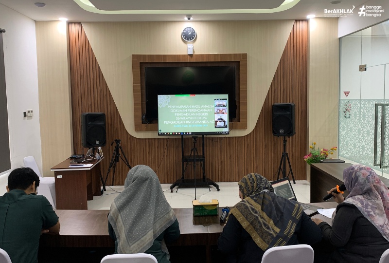 Banda Aceh, 26/11/2025. Pengadilan Tinggi Banda Aceh melaksanakan kegiatan Diklat Di Tempat Kerja (DDTK) dengan agenda utama Penyampaian Hasil Analisa Dokumen Perencanaan Pengadilan Negeri Se-Wilayah Hukum Pengadilan Tinggi Banda Acehpada hari Rabu tanggal 26 November 2025. Kegiatan yang bertujuan untuk memfinalisasi dan memastikan kesesuaian Dokumen Rencana Strategis (Renstra) periode 2025–2029 ini diselenggarakan secara daring (online) melalui platform Zoom Meeting. Seluruh satuan kerja (satker) di wilayah hukum PT Banda Aceh turut hadir dalam kegiatan tersebut.