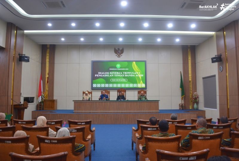 Banda Aceh, 23/4/2026 - Pengadilan Tinggi Banda Aceh menyelenggarakan kegiatan Dialog Kinerja untuk periode Triwulan I Tahun 2026 pada hari Kamis tanggal 23 April 2026. Kegiatan ini dipimpin langsung oleh Ketua Pengadilan Tinggi Banda Aceh Nursyam S.H., M.Hum., sebagai bagian dari upaya berkelanjutan lembaga dalam memperkuat tata kelola peradilan yang akuntabel, transparan, serta berorientasi pada peningkatan kualitas pelayanan kepada masyarakat pencari keadilan di wilayah hukum Provinsi Aceh.