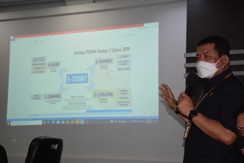 Banda Aceh - (2/11/2021) Bertempat di ruang rapat Pengadilan Tinggi Banda Aceh, diadakan Sosialisasi Aplikasi e-Court Pada Tingkat Banding. Pemateri dalam sosialisasi tersebut adalah H. Makaroda Hafat, S.H., M.Hum., selaku Hakim Tinggi Pengadilan Tinggi Banda Aceh.