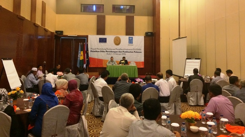 Ketua Pengadilan Tinggi Banda Aceh, H. Chaidir, SH, MH., membuka secara resmi acara pelatihan bagi Hakim berkelanjutan untuk wilayah provinsi Aceh. Pelatihan ini merupakan lanjutan dari Pelatihan sebelumnya yang bertempat di Hotel Acacia - Jakarta. Acara ini dilaksanakan atas kerjasama antara Badan Litbang Diklat Kumdil Mahkamah Agung dengan EU-UNDP SUSTAIN. Pelatihan ini berlansung dari tanggal 2 - 4 Februari 2016.