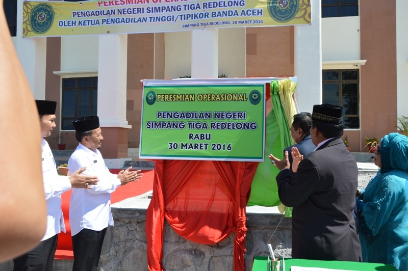 Pada pagi yang cerah Ketua Pengadilan Tinggi/Tipikor Banda Aceh H. Chaidir, SH, MH membuka secara Resmi Operasional Pengadilan Negeri Simpang Tiga Redelong, turut hadir pada acara persemian tersebut Wakil Ketua Pengadilan Tinggi/Tipikor Banda Aceh, para Hakim Tinggi PT Banda Aceh, Bupati Kabupaten Bener Meriah, Bupati Kabupaten Aceh Tengah Forum Komunikasi Pimpinan Daerah, Ketua Pengadilan Negeri se-wilayah Hukum Provinsi Aceh, Tokoh Masyarakat, Tokoh Adat serta masyarakat sekitar.