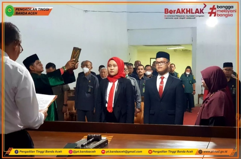 Ketua Pengadilan Tinggi (KPT) Banda Aceh, Dr H. Suharjono, S.H., M.Hum pada Rabu pagi, 31 Agustus 2022 di Ruang Sidang Utama Gedung Sementara PT Banda Aceh melantik Sigit Pramono Ginting, A.Md.T. dalam jabatan fungsional Pranata Komputer Terampil.