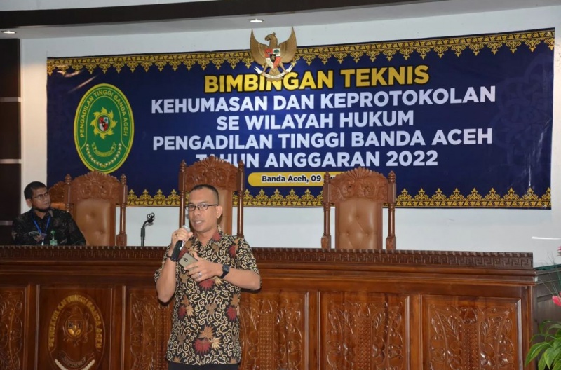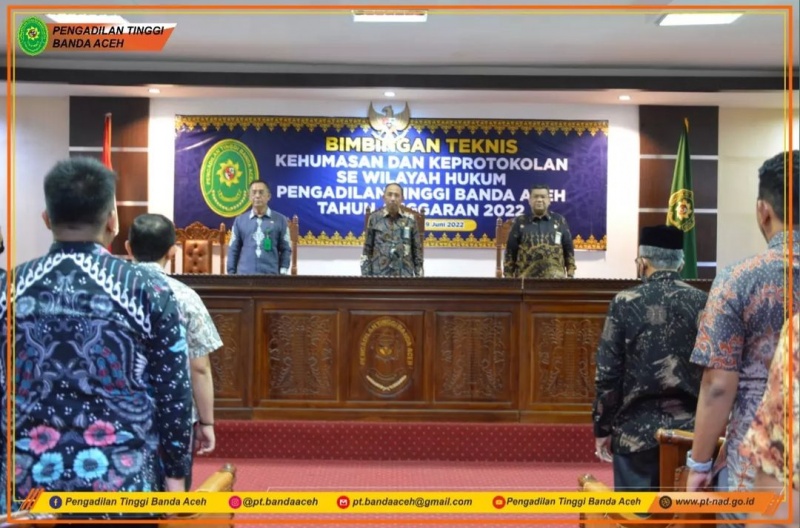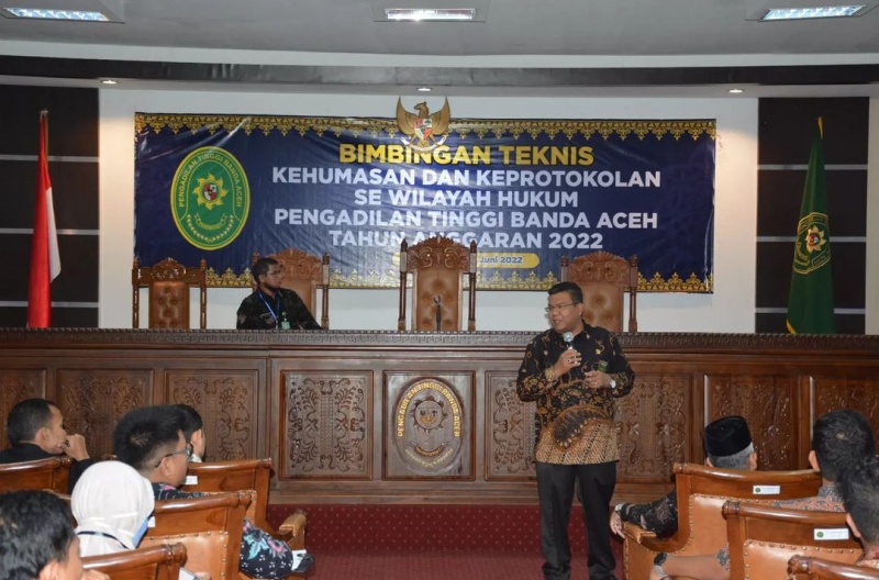 Banda Aceh - (09 juni 2022) Dalam rangka mewujudkan Zona Integritas (ZI), PT Banda Aceh terus memantapkan diri dari segala bidang, salah satunya adalah bidang Kehumasan dan Protokoler, dengan adanya BIMTEK ini PT Banda Aceh ingin memantapkan seluruh satkernya dengan mengadakan BIMTEK Kehumasan dan Keprotokolan Se Wilayah Hukum PT Banda Aceh, dimana dalam materi BIMTEK tersebut sedikit banyak berisi tentang penggunaan media sosial dalam berinteraksi dengan pengguna layanan peradilan.