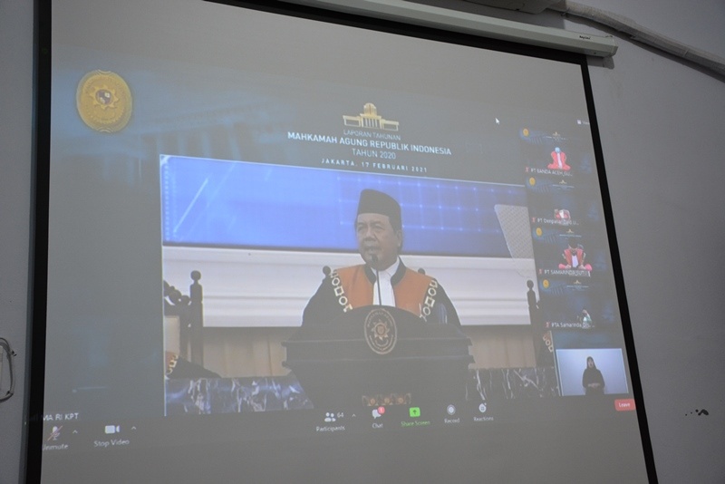 Ketua Pengadilan Tinggi Banda Aceh, Dr. H. GUSRIZAL, S.H., M.Hum. mengikuti Sidang Pleno Istimewa Laporan Tahunan Mahkamah Agung Tahun 2020 secara virtual.