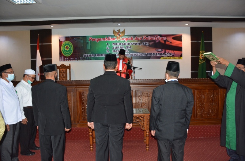 PENGAMBILAN SUMPAH DAN PELANTIKAN MUHARIRSYAH, S.H., JUFRI, S.H., DAN RAFINAL SEBAGAI PANITERA PENGGANTI PENGADILAN TINGGI BANDA ACEH