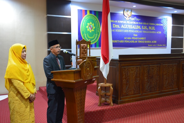 Ketua Pengadilan Tinggi Banda Aceh Mengambil Sumpah Dan Melantik Drs. Agus Salim, SH, MH Sebagai Sekretaris