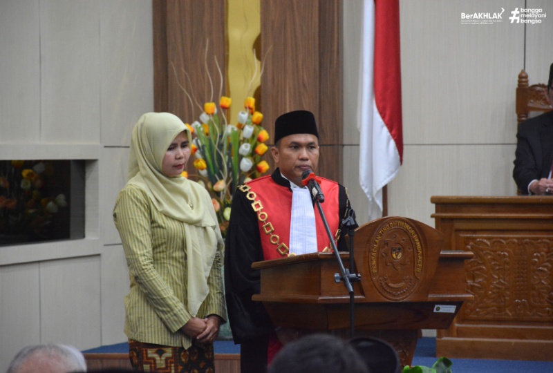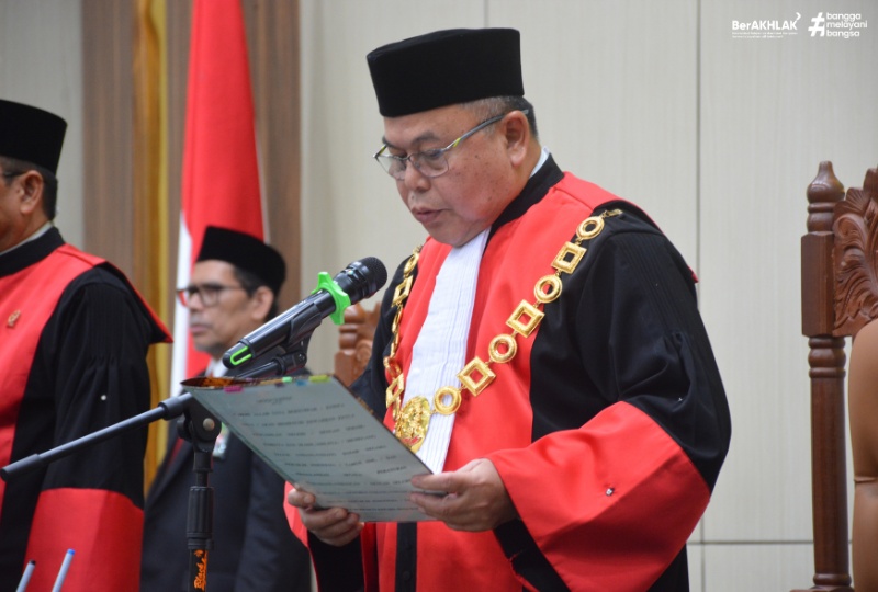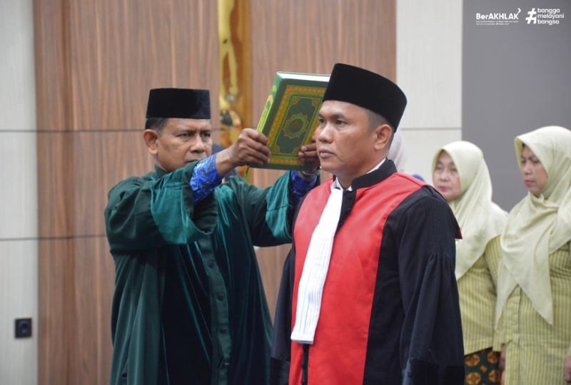 Ketua Pengadilan Tinggi (KPT) Banda Aceh Nursyam, S.H., M.Hum., melakukan pengambilan sumpah dan melantik Muhammad Alqudri, S.H., M.H. sebagai Ketua Pengadilan Negeri Suka Makmue yang baru menggantikan pejabat sebelumnya Asraruddin Anwar, S.H., M.H.
