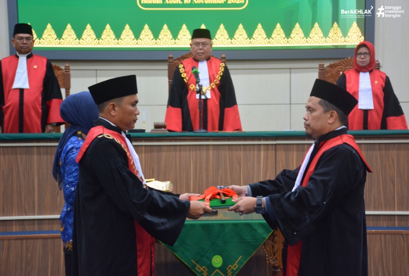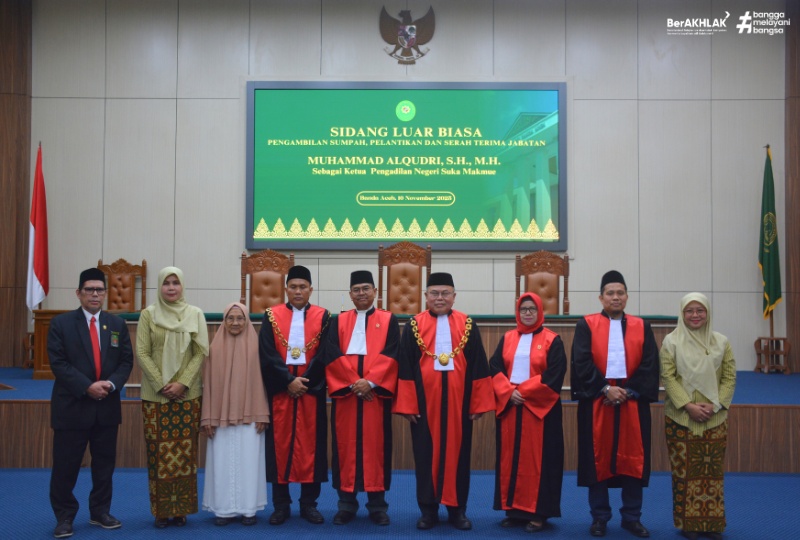 Banda Aceh, 10/11/2025. Pengadilan Tinggi Banda Aceh menggelar Sidang Luar Biasa Pengambilan Sumpah, Pelantikan, dan Serah Terima Jabatan Ketua Pengadilan Negeri Suka Makmue pada hari Senin tanggal 10 November 2025 bertempat di Ruang Aula Pengadilan Tinggi Banda Aceh.