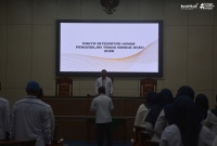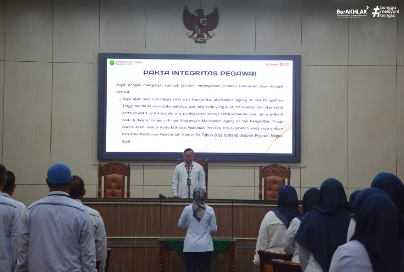Prosesi diawali dengan menyanyikan lagi Indonesia Raya dilanjutkan Hymne Mahkamah Agung kemudian pelaksanaan pembacaan Pakta Integritas secara khidmat yang terbagi dalam dua kelompok. Pembacaan Pakta Integritas bagi jajaran Hakim dipimpin oleh Hakim Tinggi Irwan Effendi, S.H., M.Hum., sementara untuk jajaran pegawai dipimpin oleh Sekretaris Pengadilan Tinggi Banda Aceh Rismayati, S.T., M.M. Melalui pembacaan janji ini, seluruh aparatur Pengadilan Tinggi Banda Aceh menegaskan kembali komitmennya untuk menjaga integritas, menolak segala bentuk praktik gratifikasi, dan menjalankan tugas sesuai dengan kode etik serta peraturan perundang-undangan yang berlaku.