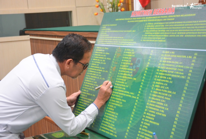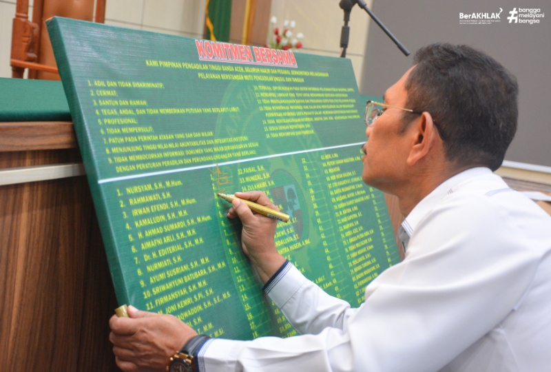 Setelah prosesi penandatanganan selesai, acara dilanjutkan dengan penandatanganan Komitmen Bersama tahun 2026 sebagai wujud tekad kolektif dalam mempertahankan dan meningkatkan kualitas pelayanan publik serta integritas lembaga. Dalam arahannya, Ketua Pengadilan Tinggi Banda Aceh Nursyam, menekankan bahwa momentum awal tahun ini harus menjadi pelecut semangat bagi seluruh jajaran untuk memberikan performa terbaik. Beliau menggarisbawahi bahwa pakta integritas yang telah ditandatangani harus diimplementasikan secara nyata dalam keseharian bekerja, bukan sekadar menjadi formalitas administratif.