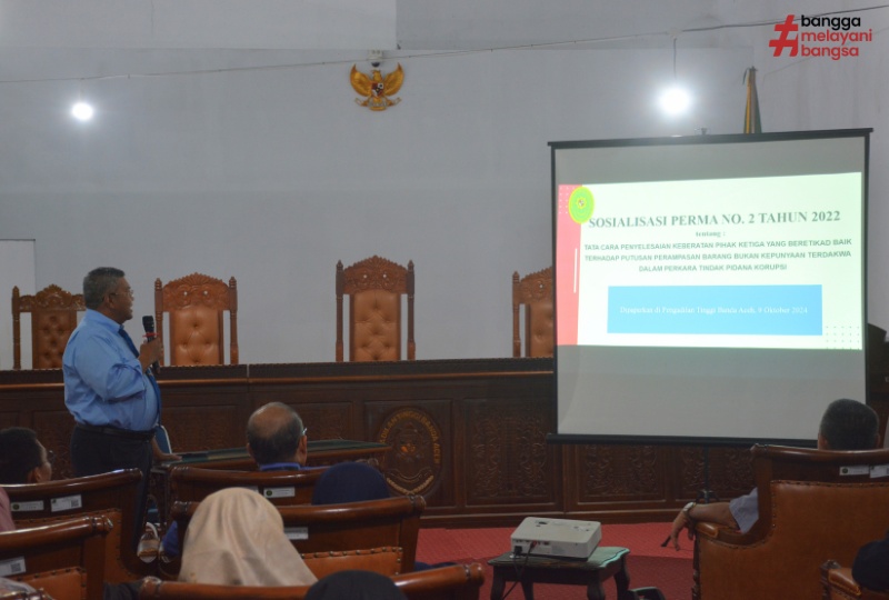 Banda Aceh, 9/10/2024. Pengadilan Tinggi Banda Aceh mengadakan kegiatan sosialisasi Peraturan Mahkamah Agung (Perma) Nomor 1, 2, dan 3 Tahun 2022 pada hari Rabu 9 Oktober 2024, bertempat di ruang sidang. Kegiatan ini bertujuan untuk meningkatkan pemahaman para hakim dan pegawai pengadilan terkait regulasi terbaru yang dikeluarkan oleh Mahkamah Agung. Sosialisasi tersebut dihadiri oleh Wakil Ketua Pengadilan Tinggi Banda Aceh, Isnurul Syamsul Arif, S.H., M.Hum. bersama para hakim tinggi, pejabat kepaniteraan, kesekretariatan, serta staf peradilan.
