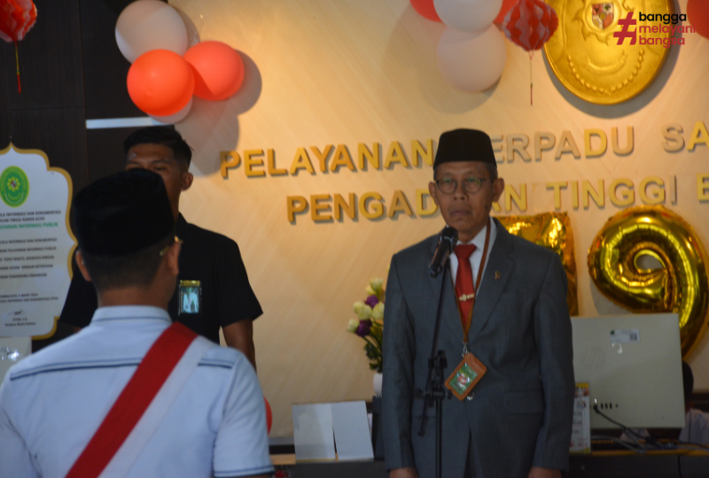 Banda Aceh, 19/8/2024 (Humas) - Dalam rangka memperingati Hari Ulang Tahun Mahkamah Agung Republik Indonesia yang ke-79 Tahun 2024, Pengadilan Tinggi Banda Aceh menyelenggarakan upacara peringatan HUT Mahkamah Agung RI ke-79. Hujan yang mengguyur Kota Banda Aceh dari malam hari mengakibatkan upacara tidak dapat dilaksanakan di halaman Kantor PT Banda Aceh dan memindahkan lokasi upacara kedalam Gedung PT Banda Aceh, walaupun demikian upacara dapat berlangsung dengan khidmat. Bertindak sebagai pembina upacara, Ketua Pengadilan Tinggi Banda Aceh, Dr. H. Suharjono, S.H., M.Hum.