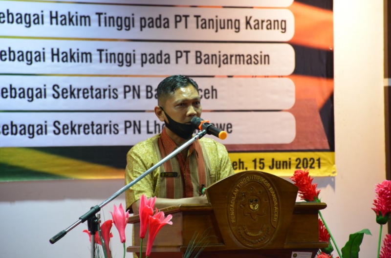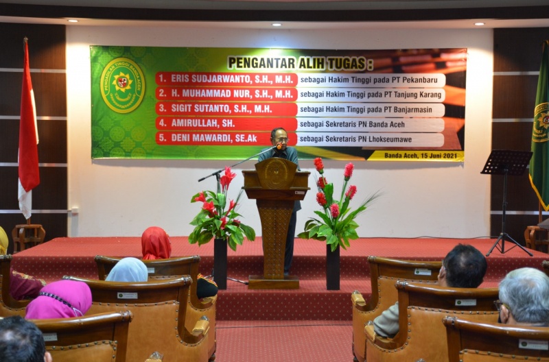 Banda Aceh - (15/6/2021) Mengambil tempat di Ruang Sidang Utama Pengadilan Tinggi Banda Aceh pada hari Selasa tanggal 15 Juni 2021, acara Pengantar Alih Tugas