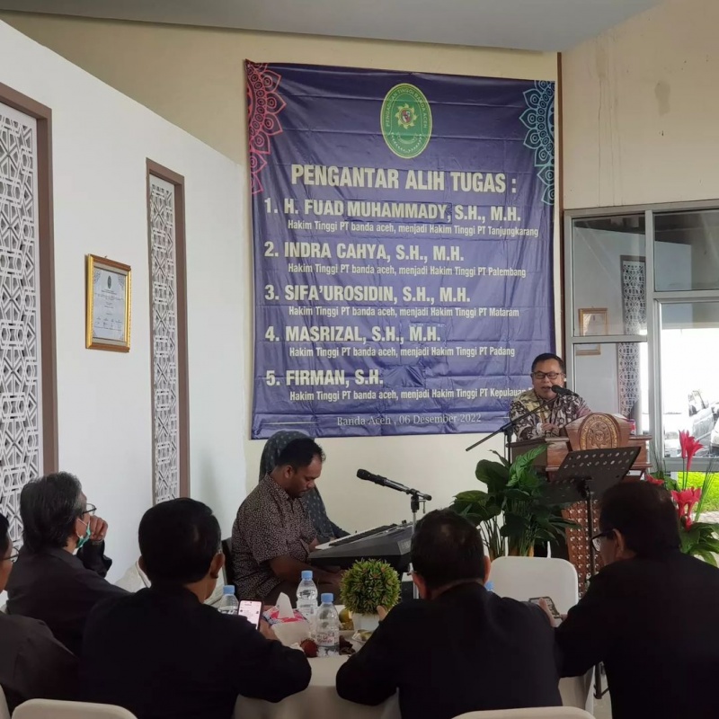 "Kami berterima kasih kepada semua warga PT Banda Aceh dan 22 PN se-Aceh yang selama kami bertugas di Provinsi ini telah diterima dengan baik dan nyaman, sehingga memudahkan kami dalam melaksanakan tugas, baik sebagai hakim banding maupun hakim pengawas daerah dan hakim pengawas bidang" Ungkap Pak Fuad, mewakili teman-temannya yang akan menjadi Hakim Tinggi di provinsi-provinsi lain.
