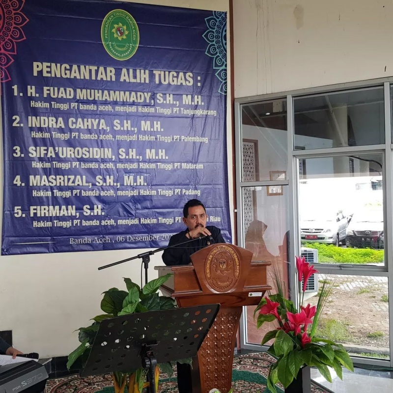 Wakil Ketua Pengadilan Tinggi Banda Aceh, Bpk. Nursyam, S.H., M.H. menyampaikan sambutan pengantar alih tugas terhadap 5 (lima) orang Hakim Tinggi yang selama ini bertugas di Pengadilan Tinggi Banda Aceh.