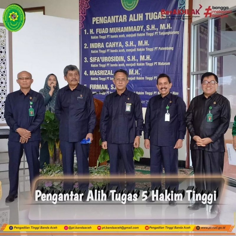 Mengakhiri kata-kata perpisahan, masing-masing Hakim Tinggi yang akan dimutasi mengucapkan, "kami menyampaikan terima kasih dan mohon maaf atas segala kesalahan dan kekhilafan kami selama bertugas di Provinsi Aceh. Kami menyimpan banyak kenangan indah selama bertugas di Provinsi Aceh" Ungkap Pak Fuad, Pak Sifa, Pak Masrizal, Pak Indra, dan Pak Firman.