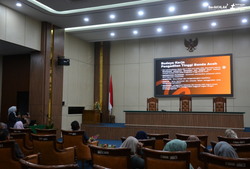 Dalam sesi Budaya Kerja, Rismayati, S.T., M.M. menjelaskan bahwa tujuan utama penetapan budaya kerja adalah untuk menciptakan lingkungan kerja yang positif dan produktif, sehingga dapat mendukung setiap pegawai dalam mencapai tujuan organisasi. Budaya kerja yang diadopsi PT Banda Aceh berfokus pada empat nilai utama, yakni Berorientasi Pelayanan, Kompeten, Adaptif, dan Akuntabel. Indikator keberhasilan dari penerapan nilai-nilai ini diukur antara lain dari terwujudnya Indeks persepsi stakeholder yang puas, terlaksananya kegiatan peningkatan kompetensi pegawai, dan tersedianya inovasi-inovasi baru dalam layanan peradilan.