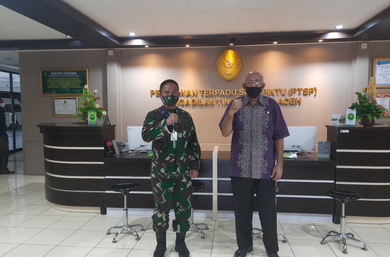 Ketua Pengadilan Tinggi Banda Aceh, Dr. Amril, S.H., M.Hum., menerima kunjungan Panglima Komando Daerah Militer (Pangdam) Iskandar Muda, Mayjen TNI Hassanudin, S.I.P., M.M., pada Kamis, 30 April 2020, bertempat di ruang kerja Ketua Pengadilan Tinggi Banda Aceh.