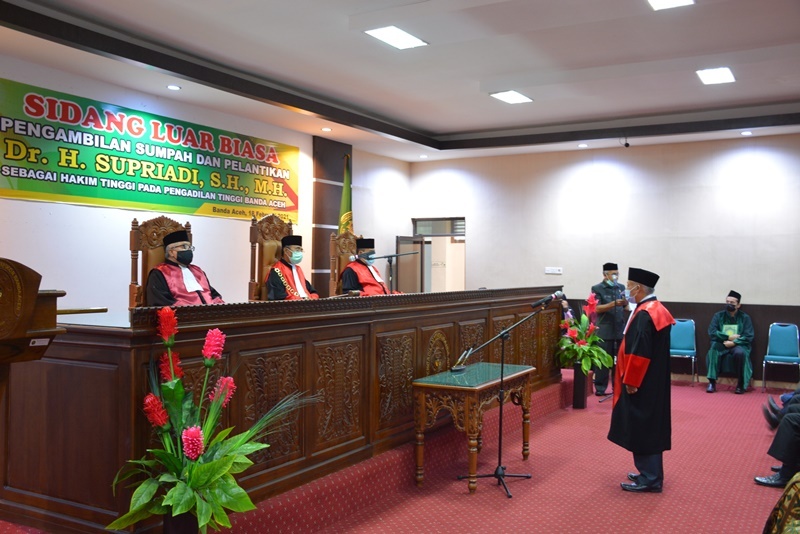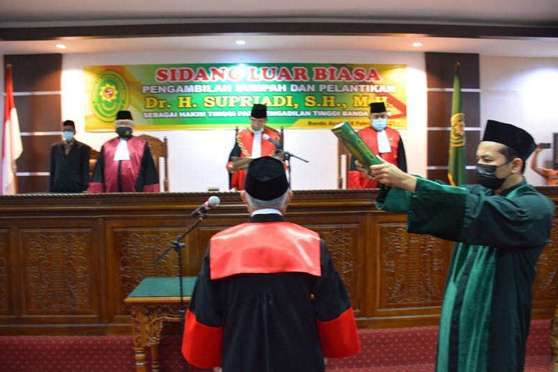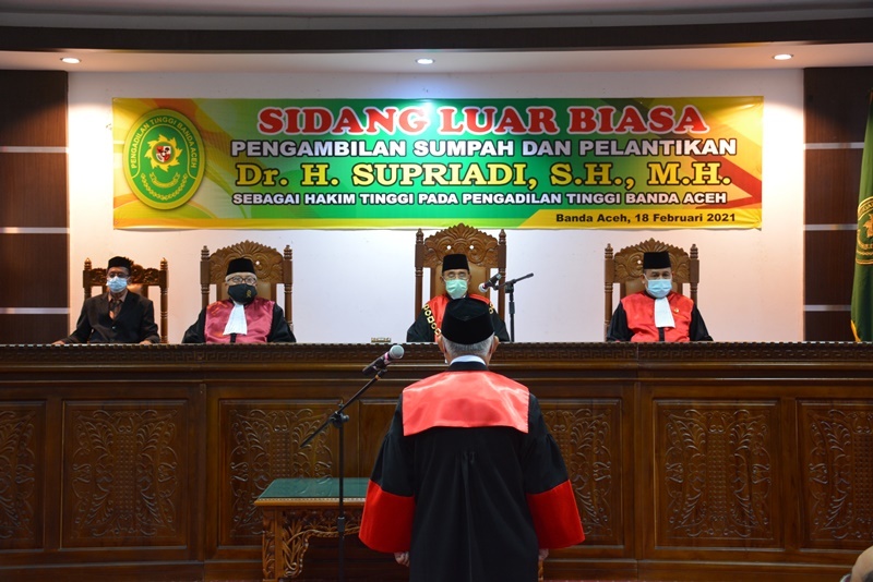Ketua Pengadilan Tinggi Banda Aceh, Dr. H. Gusrizal, S.H., M.Hum., mengambil sumpah dan melantik 1 (satu) orang Hakim Tinggi Pengadilan Tinggi Banda Aceh, hari Kamis, 18 Februari 2020 pukul 10.00 WIB di ruang sidang Pengadilan Tinggi Banda Aceh.
