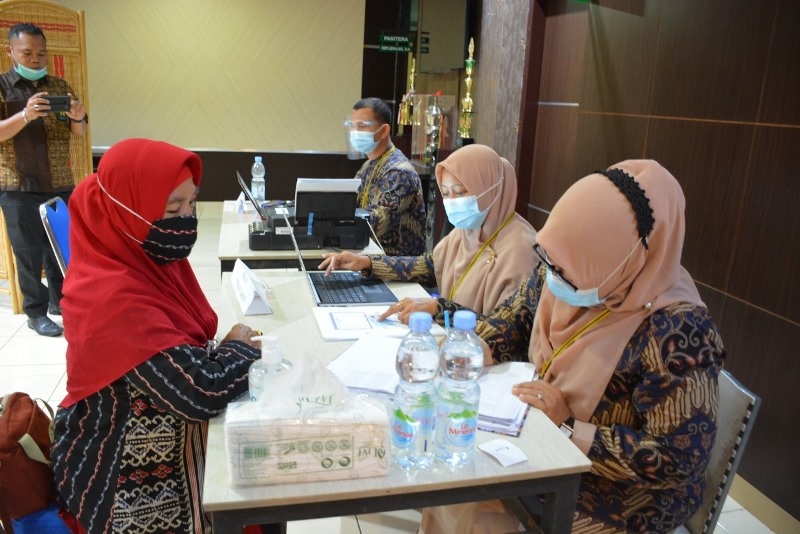 Banda Aceh - Kamis, 1 April 2021, Pengadialan Tinggi Banda Aceh Melaksanakan Vaksinasi Dosis Pertama di lingkungan Pengadilan Tinggi Banda Aceh. Vaksinasi Dosis Pertama ini diikuti oleh para Hakim Tinggi, Pejabat Kesekretariatan, Pejabat Kepaniteraan, serta seluruh staf. Vaksinasi dilakukan mulai pagi pukul 09.00 WIB