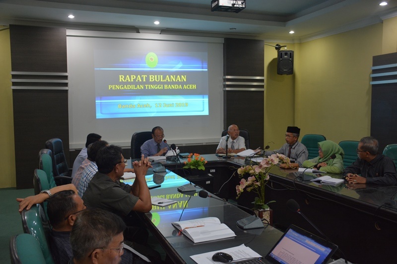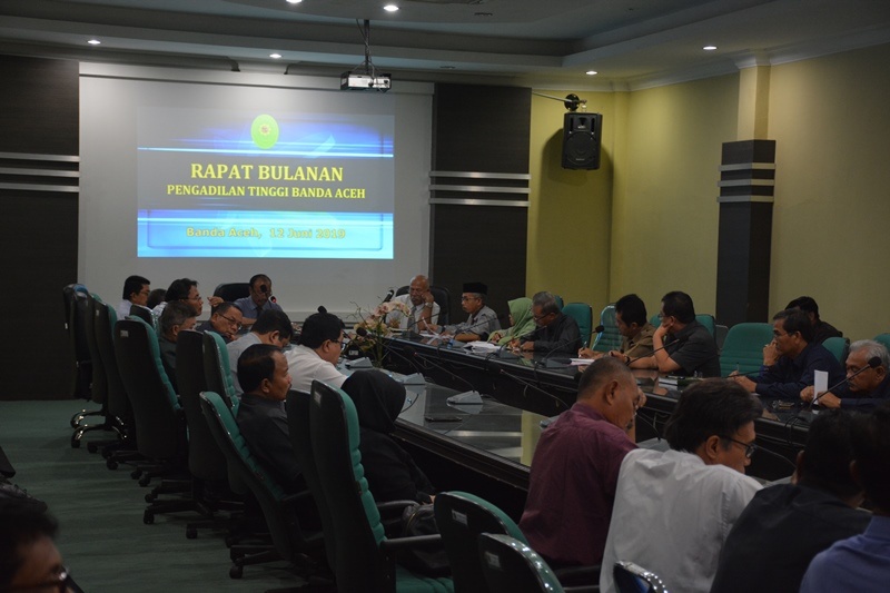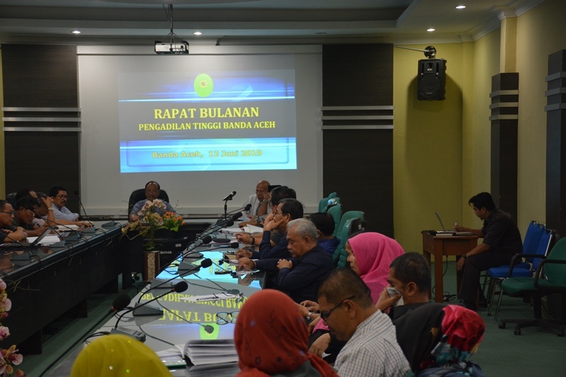 Pada hari Rabu, tanggal 12 Juni 2019, pukul 09.30-11.30 WIB, bertempat di Ruang Rapat Pengadilan Tinggi Banda Aceh, telah dilaksanakan kegiatan rapat rutin bulanan bulan Juni 2019. Rapat tersebut dipimpin langsung oleh Yth. Ketua Pengadilan Tinggi Banda Aceh, H. Djumali, S.H.