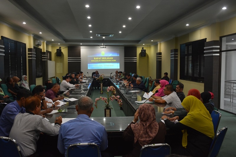 Rapat dihadiri oleh Wakil Ketua Pengadilan Tinggi Banda Aceh, seluruh Hakim Tinggi, Hakim Ad Hoc, Hakim Non Palu, para Pejabat dan Fungsional Kepaniteraan, para Pejabat dan Fungsional Kesekretariatan, dan para Staf pada Pengadilan Tinggi Banda Aceh.