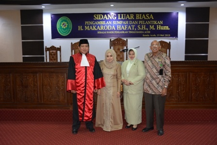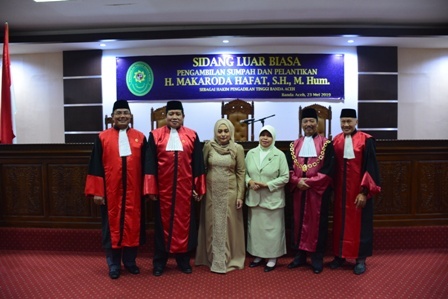 Banda Aceh, Kamis tanggal 23 Mei 2019 tepat pukul 15.00 WIB bertempat di Ruang Sidang Pengadilan Tinggi Banda Aceh dilaksanakan Sidang Luar Biasa Pengambilan Sumpah dan Pelantikan Yth. Bapak H. Makaroda Hafat, S.H., M.Hum. sebagai Hakim Tinggi Pengadilan Tinggi Banda Aceh. Yth. Bapak H. Makaroda Hafat, S.H., M.Hum. sebelumnya menjabat sebagai Hakim Pengadilan Negeri Jambi.