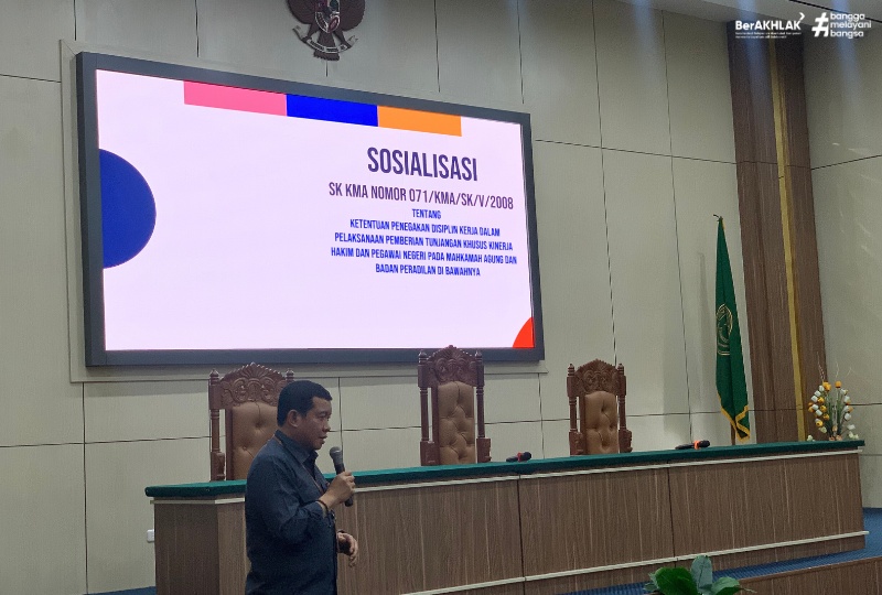 Banda Aceh, 30/9/2025. Pengadilan Tinggi Banda Aceh melaksanakan kegiatan Sosialisasi SK KMA Nomor 071/KMA/SK/V/2008 tentang Ketentuan Penegakan Disiplin Kerja dalam Pelaksanaan Pemberian Tunjangan Khusus Kinerja Hakim dan Pegawai Negeri pada Mahkamah Agung dan Badan Peradilan di Bawahnya pada hari Selasa tanggal 30 September 2025. Kegiatan ini dipaparkan oleh Hakim Tinggi Pengadilan Tinggi Banda Aceh, H. Makaroda Hafat, S.H., M.Hum., dan diikuti oleh Ketua Pengadilan Tinggi Banda Aceh, Nursyam, S.H., M.Hum., para Hakim Tinggi, Hakim Ad Hoc, serta pejabat kepaniteraan dan kesekretariatan.