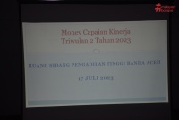 Banda Aceh, 17/07/2023 (Humas) - Bertempat di Ruang Sidang Pengadilan Tinggi Banda Aceh, Panitera Pengadilan Tinggi Banda aceh Ramdhani, S.H. menyampaikan paparan pada Rapat Monitoring dan Evaluasi Capaian Akuntabilitas Kinerja Triwulan II Tahun 2023.