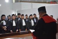 Ketua Pengadilan Tinggi Dr Suharjono SH MHum membacakan lafaz sumpah advokat yang diikuti secara bersama-sama oleh 27 advokat baru.
