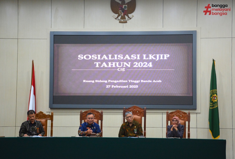 Banda Aceh, 27/2/2025. Pengadilan Tinggi Banda Aceh menggelar kegiatan sosialisasi Laporan Kinerja Instansi Pemerintah (LKjIP) tahun 2024 yang dipimpin oleh Panitera Pengadilan Tinggi Banda Aceh, Ramdhani, S.H pada hari Kamis tanggal 27 Februari 2025. Acara yang berlangsung di aula utama ini dihadiri oleh Ketua Pengadilan Tinggi Banda Aceh, Nursyam, S.H., M.Hum., Wakil Ketua, para Hakim Tinggi, Hakim Ad Hoc, pejabat kepaniteraan dan kesekretariatan, serta seluruh staf pengadilan. Kegiatan ini bertujuan untuk meningkatkan pemahaman seluruh jajaran terkait penyusunan dan evaluasi LKjIP guna mewujudkan tata kelola pemerintahan yang transparan dan akuntabel.