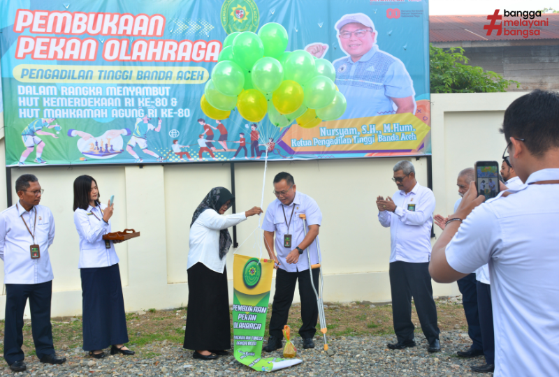 Banda Aceh, 28/7/2025. Dalam rangka menyemarakkan peringatan Hari Ulang Tahun Kemerdekaan Republik Indonesia ke-80 dan Hari Ulang Tahun Mahkamah Agung Republik Indonesia ke-80, Pengadilan Tinggi Banda Aceh menyelenggarakan kegiatan Pekan Olahraga sebagai bentuk refleksi semangat kebangsaan dan integritas aparatur peradilan. Kegiatan ini resmi dibuka oleh Ketua Pengadilan Tinggi Banda Aceh, Bapak Nursyam, S.H., M.Hum pada hari Senin tanggal 28 Juli 2025 setelah kegiatan Apel pagi.