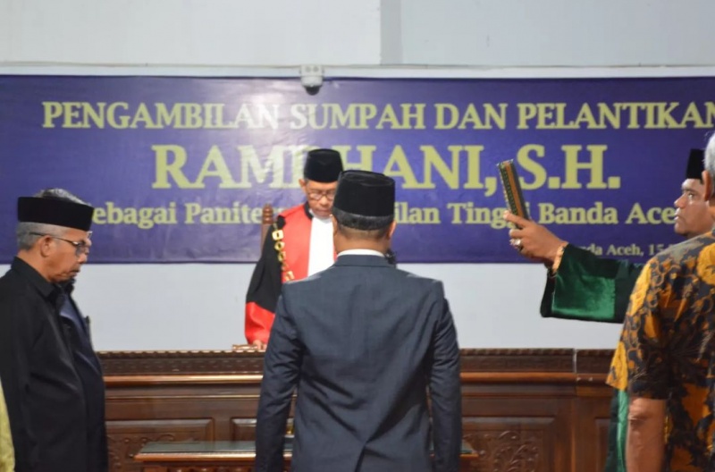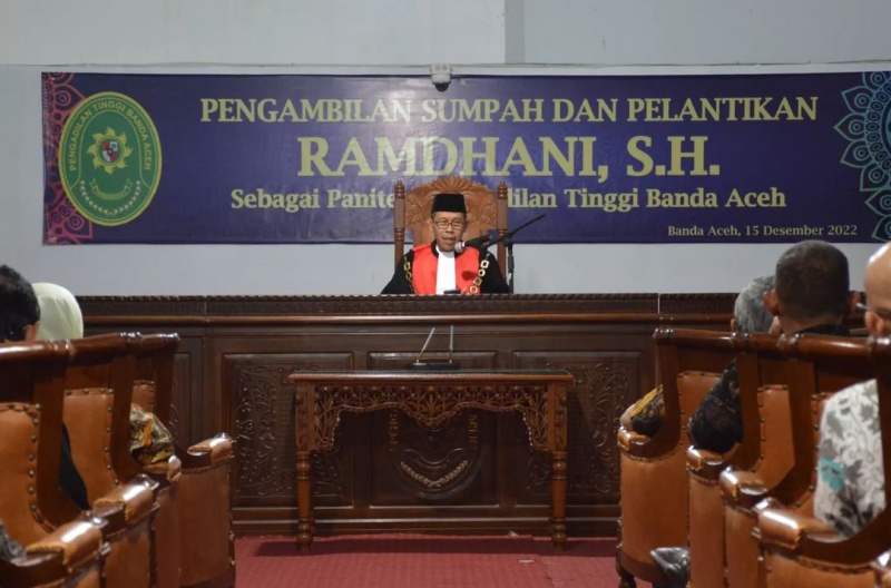 Banda Aceh - (15/12/2022) Pengadilan Tinggi Banda Aceh Menggelar Pengambilan Sumpah dan Pelantikan Panitera yang bertempat di ruang sidang utama kantor sementara Pengadilan Tinggi Banda Aceh. Ketua Pengadilan Tinggi Banda Aceh melantik dan mengambil Sumpah, dengan saksi adalah Bpk. Masrul, S.H., M.H. dan Bpk. Drs. H. Agussalim, S.H. M.H