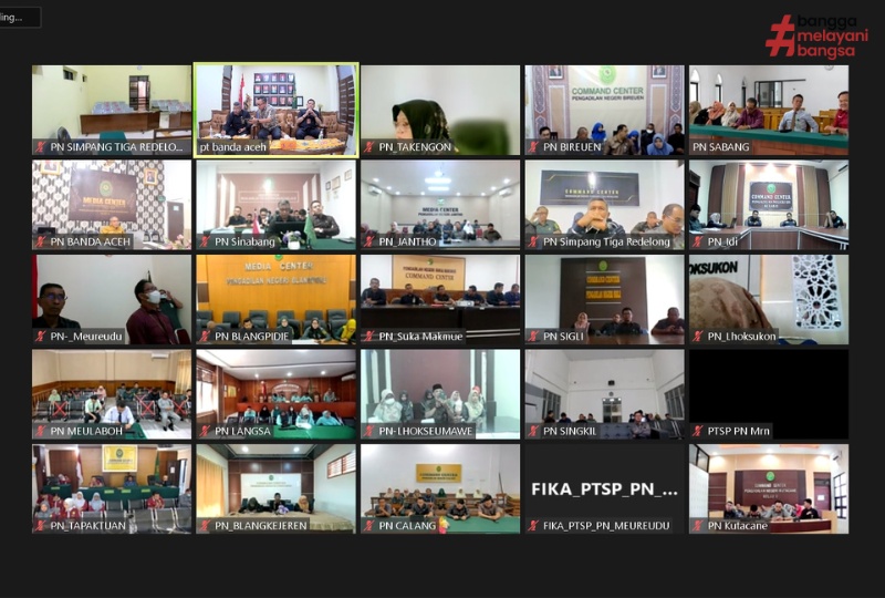 Banda Aceh (Humas) - Bertempat di ruang command center Pengadilan Tinggi Banda Aceh, WKPT Banda Aceh Nursyam, S.H., M.Hum. membuka dengan sambutan pada kegiatan Pengkajian PTSP Pengadilan Negeri se-Wilayah Hukum Pengadilan Tinggi Banda Aceh, yang mana kegiatan tersebut rutin dilaksanakan 1 bulan sekali sesuai dengan SK jadwal kegiatan PT Banda Aceh periode 2023.
