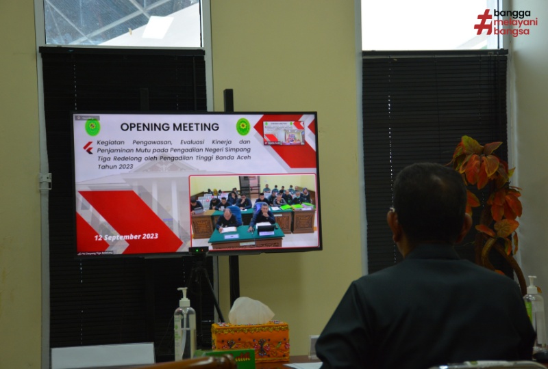 Banda Aceh, 12/09/2023 (Humas) - Tim Assesor Pengadilan Tinggi Banda Aceh yang diketuai oleh Irwan Efendi, S.H., M.Hum., berserta tim melakukan Evaluasi Kinerja Pelayanan Publik (pengganti APM) pada Pengadilan Neger Simpang Tiga Redelong. Evaluasi Kinerja yang dilaksanakan pada hari Selasa, 12 September 2023 tersebut dilakukan secara daring melalui zoom meeting.
