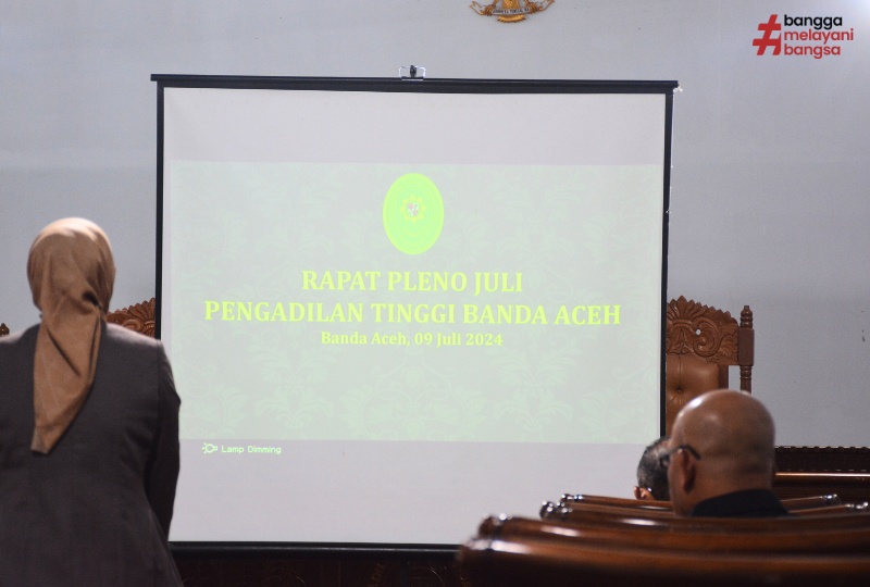 Banda Aceh, 9/7/2024 (Humas) - Ketua Pengadilan Tinggi Banda Aceh Dr. H. Suharjono, S.H., M.Hum. memimpin rapat pleno bulan Juli 2024 yang dilaksanakan di ruang sidang Pengadilan Tinggi Banda Aceh dan dihadiri oleh Wakil Ketua, para Hakim dan Aparatur Pengadilan Tinggi Banda Aceh.