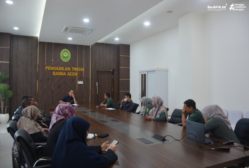 Banda Aceh, 24/2/2026 - Sebagai bentuk komitmen nyata dalam mengakselerasi pembangunan Zona Integritas (ZI) menuju Wilayah Bebas dari Korupsi (WBK) dan Wilayah Birokrasi Bersih dan Melayani (WBBM), Pengadilan Tinggi Banda Aceh menyelenggarakan agenda Pemilihan Agen Perubahan Tahun 2026. Kegiatan yang dilaksanakan pada hari Selasa tanggal 24 Februari 2026, bertempat di Ruang Rapat Ketua Pengadilan Tinggi Banda Aceh. Dipandu oleh Tim Penilai Agen Perubahan dengan menjunjung tinggi prinsip objektivitas, transparansi, dan akuntabilitas guna menjaring aparatur terbaik yang mampu menjadi katalisator transformasi organisasi.