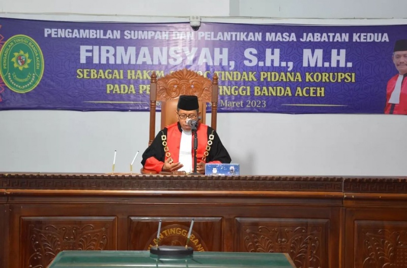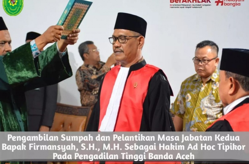 PENGAMBILAN SUMPAH DAN PELANTIKAN MASA JABATAN KEDUA BAPAK FIRMANSYAH, S.H., M.H. SEBAGAI HAKIM AD HOC TIPIKOR PADA PENGADILAN TINGGI BANDA ACEH