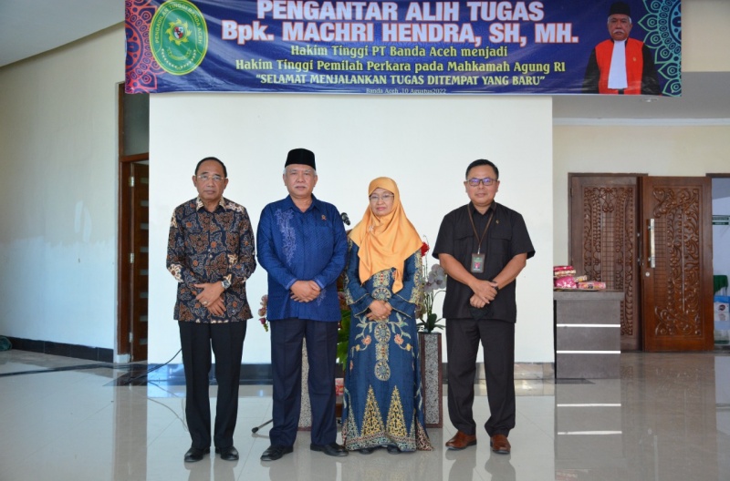 Banda Aceh - (10/8/2022) Mengambil tempat di Lobi Gedung Sementara Pengadilan Tinggi Banda Aceh pada hari Rabu tanggal 10 Agustus 2022, acara Pengantar Alih Tugas