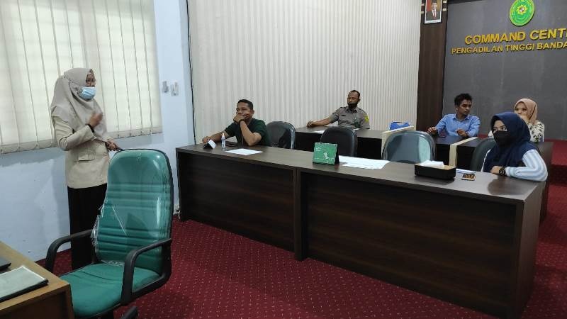 Banda Aceh - (18/2/2022) Pengadilan Tinggi Banda Aceh melaksanakan Pelatihan Kemampuan Pendampingan Disabilitas bagi petugas PTSP dan Tenaga Keamanan Pengadilan Tinggi Banda Aceh. Pelatihan tersebut berlangsung selama 3 hari, dimana pada hari pertama para peserta dibekali dengan materi yaitu bagaimana cara kita dalam memberikan pelayanan bagi penyandang disabilitas, kemudian dilanjutkan dihari kedua dan ketiga dimana para peserta mempraktekkan langsung bagaimana dalam memberikan pelayanan bagi penyandang disabilitas. Pemateri pada pelatihan tersebut yaitu Kepala Sekolah SMALB YPPC Banda Aceh, Dra. Kasidah, M.Pd.