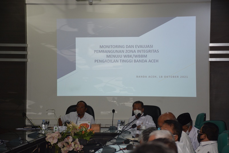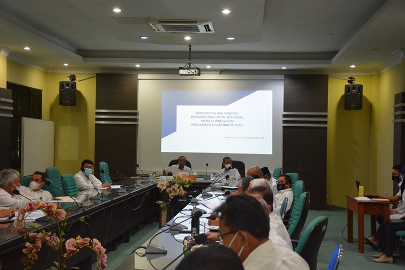Banda Aceh - (18/10/2021) ada hari senin tanggal 18 Oktober 2021, Ketua Pengadilan Tinggi Banda Aceh Yth. Bpk. Dr. H. Gusrizal, S.H. M.Hum. bersama Tim Zona Integritas Pengadilan Tinggi Banda Aceh melaksanakan Rapat Evaluasi Pelaksanaan Pembangunan Zona Integritas pada Pengadilan Tinggi Banda Aceh di Ruang Rapat Pengadilan Tinggi Banda Aceh. Ketua Pengadilan Tinggi Banda Aceh menginstruksikan kepada seluruh Tim Pembangunan Zona Integritas untuk melengkapi dan melaksanakan hasil evaluasi pelaksanaan zona integritas oleh Tim Evaluasi Zona Integritas Badan Pengawasan Mahkamah Agung Republik Indonesia.
