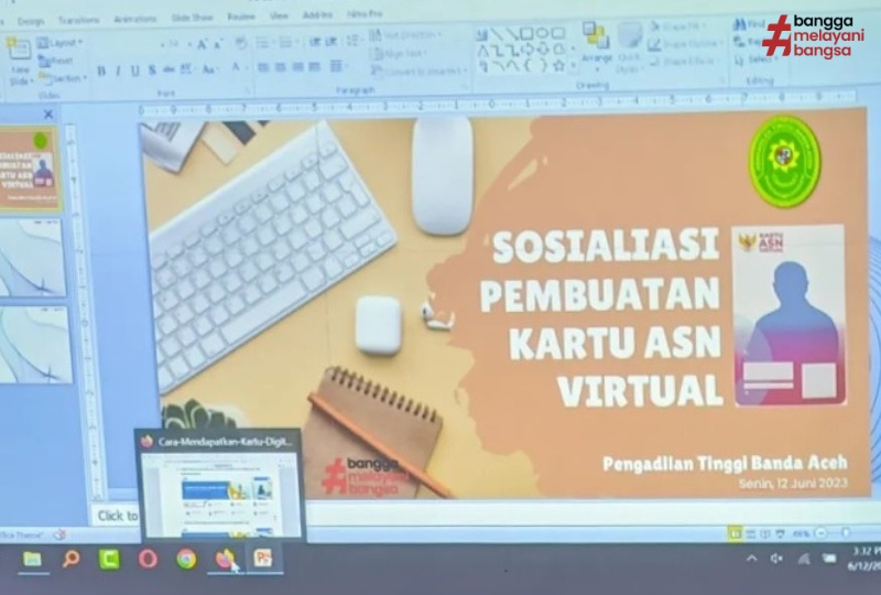Banda Aceh (Humas) - Bertempat di ruang sidang gedung sementara Pengadilan Tinggi Banda Aceh, Staf Bagian Kepegawaian TI, Rasyed Hakimsyah Ginting, S.Kom. menyampaikan Sosialisasi Pembuatan Kartu ASN Virtual dan Kartu Taspen kepada seluruh warga Pengadilan Tinggi Banda Aceh. Dalam sosialiasi yang dilaksakan pada senin 12 Juni 2023, Rasyed menjelaskan tata cara pembuatan Kartu ASN virtual dan Kartu Taspen digital yang dapat dilakukan secara mandiri oleh seluruh pegawai dengan menggunakan akun masing-masing. Untuk diketahui bahwa Kartu ASN Virtual ini merupakan pengganti dari Kartu Pegawai.