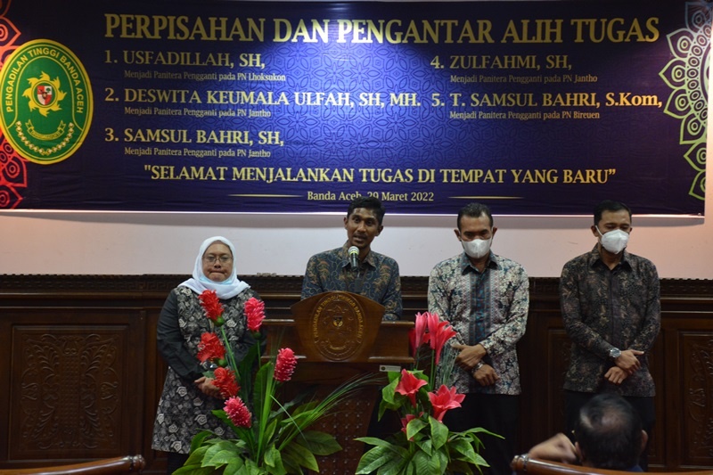 Banda Aceh - (29/3/2022) Mengambil tempat di Ruang Sidang Utama Pengadilan Tinggi Banda Aceh pada hari Selasa tanggal 29 Maret 2021, acara Pengantar Alih Tugas