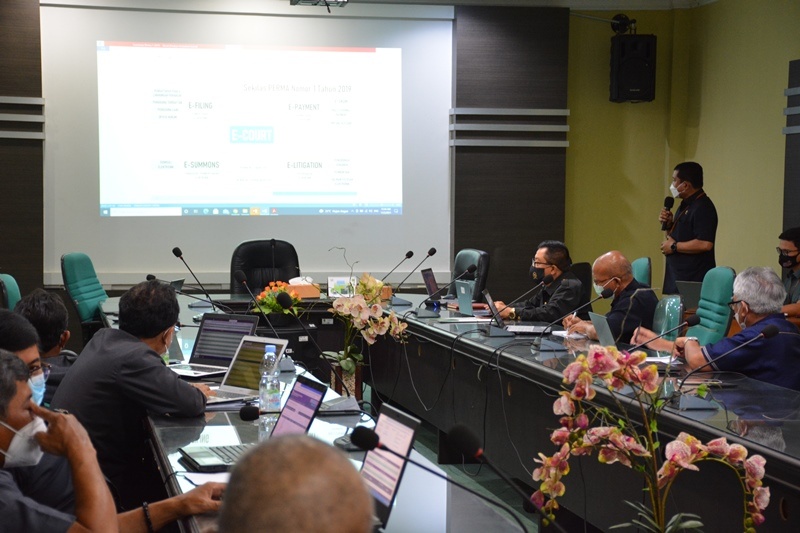 Banda Aceh - (2/11/2021) Bertempat di ruang rapat Pengadilan Tinggi Banda Aceh, diadakan Sosialisasi Aplikasi e-Court Pada Tingkat Banding. Pemateri dalam sosialisasi tersebut adalah H. Makaroda Hafat, S.H., M.Hum., selaku Hakim Tinggi Pengadilan Tinggi Banda Aceh.