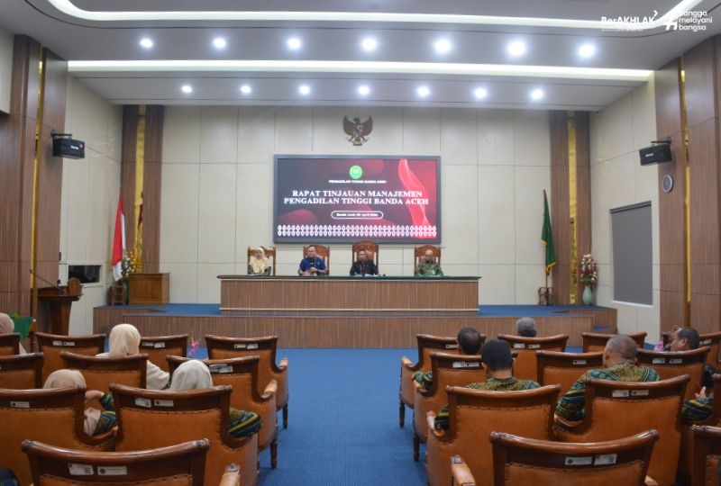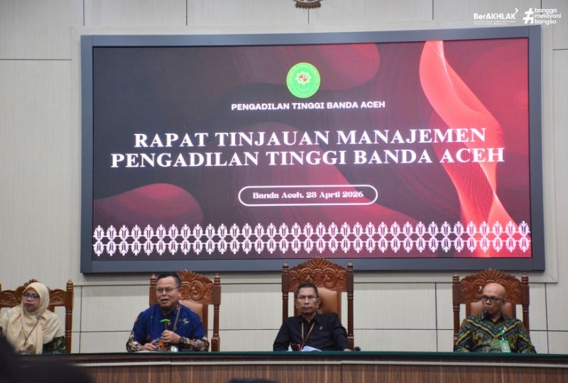 Banda Aceh, 23/4/2026 - Pengadilan Tinggi Banda Aceh menyelenggarakan Rapat Tinjauan Manajemen (RTM) untuk periode Semester I Tahun 2026 pada hari Kamis tanggal 23 April 2026. Kegiatan ini dilaksanakan di Ruang Sidang Utama Pengadilan Tinggi Banda Aceh sebagai bagian dari upaya evaluasi menyeluruh terhadap kinerja organisasi serta penerapan sistem manajemen yang telah berjalan.
