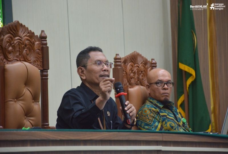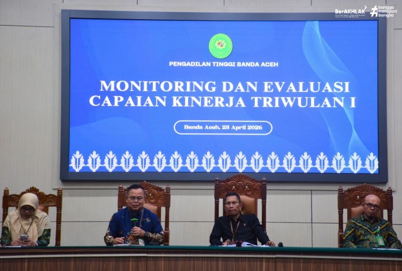 Banda Aceh, 23/4/2026 - Bertempat di Ruang Sidang Pengadilan Tinggi Banda Aceh, telah dilaksanakan kegiatan Monitoring dan Evaluasi (Monev) Capaian Kinerja Triwulan I Tahun 2026. Kegiatan yang diselenggarakan pada hari Kamis tanggal 23 April 2026 ini bertujuan untuk membedah statistik perkara, mengevaluasi efektivitas layanan digital, serta meninjau realisasi anggaran sebagai bentuk transparansi dan akuntabilitas instansi.
