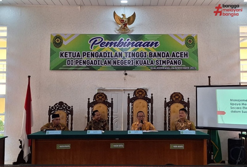 Banda Aceh, 26/09/2023 (Humas) - Ketua Pengadilan Tinggi (KPT) Banda Aceh Dr. H. Suharjono, S.H., M.Hum. didampingi oleh Panitera dan Sekretaris Pengadilan Tinggi Banda Aceh melakukan Pembinaan pada Pengadilan Negeri Kuala Simpang, Selasa 26 September 2023.