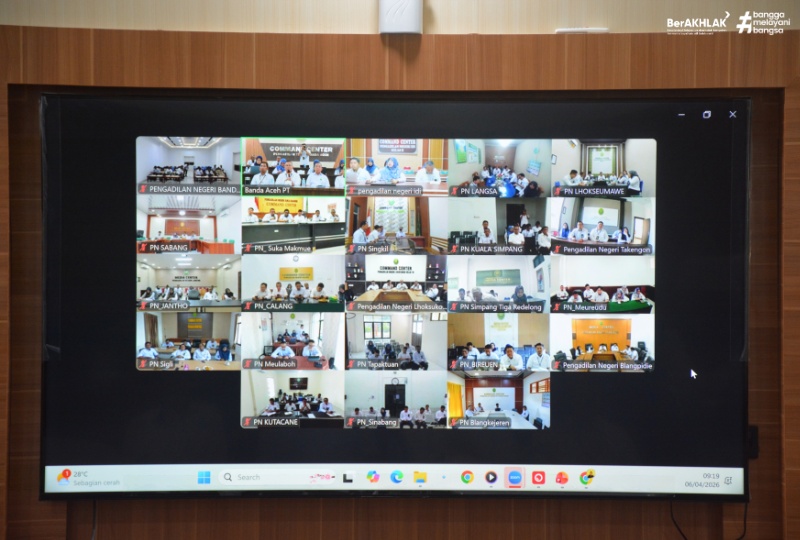 Banda Aceh, 6/4/2026 - Pengadilan Tinggi Banda Aceh melaksanakan Opening Meeting Evaluasi Laporan Kinerja Tahun 2025 yang akan dilaksanakan pada hari Senin tanggal 6 April 2026. Kegiatan yang dilakukan secara daring ini merupakan langkah strategis dalam menilai akuntabilitas kinerja di lingkungan peradilan dengan memanfaatkan teknologi melalui Aplikasi seMAr.