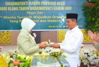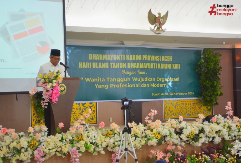 Banda Aceh, 4/11/2024. Dalam rangka memperingati HUT DYK ke-22, Dharma Yukti Karini (DYK) Provinsi Aceh menggelar serangkaian acara yang meriah dan penuh semangat. Acara tersebut diselenggarakan pada hari Senin tanggal 4 November 2024, di Aula Mahkamah Syar'iyah Aceh dan dihadiri oleh seluruh DYK cabang Provinsi Aceh. Kegiatan ini meliputi lomba pidato, lomba merangkai bunga, serta stan bazar yang menampilkan berbagai produk kreatif dari masing-masing cabang DYK. Partisipasi yang antusias dari setiap cabang dalam menyajikan produk unggulan mereka menunjukkan kekayaan kreativitas dan potensi ekonomi lokal dari anggota DYK di Provinsi Aceh.
